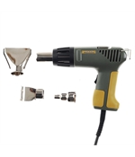 Pistol cu aer cald puternic, de 2000 W, cu control electronic Ecran LCD pentru indicarea valorii temperaturii şi al fluxului de aer Funcţia de memorare stochează ultimele setări de temperatură utilizate