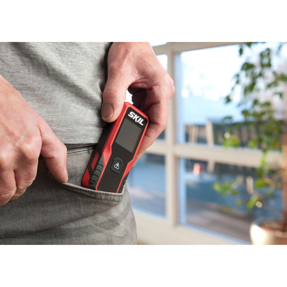 Telemetrul cu laser SKIL 1928 prezintă un interval amplu de măsurare de până la 25 de metri şi este ideal pentru măsurarea precisă şi rapidă a distanţei şi suprafeţei. Scula prezintă diferite moduri de măsurare care pot fi utilizate pentru măsurarea distanţei, măsurarea suprafeţei şi măsurare continuă. Pentru confortul dumneavoastră, puteţi stoca şi afişa maximum 2 măsurători. Datorită unui design compact cu prindere moale, unei interfeţe simple de utilizare şi a unui afişaj de lumină de fundal, SKIL 1928 oferă o soluţie excelentă pentru lucrările de măsurare. SKIL 1928 AA este livrat cu o curea de mână şi două baterii AAA.